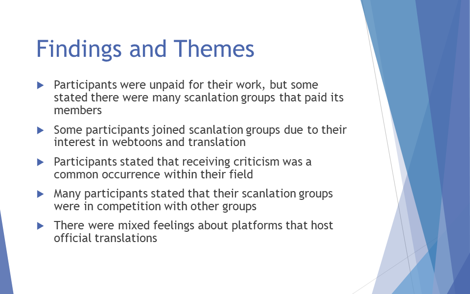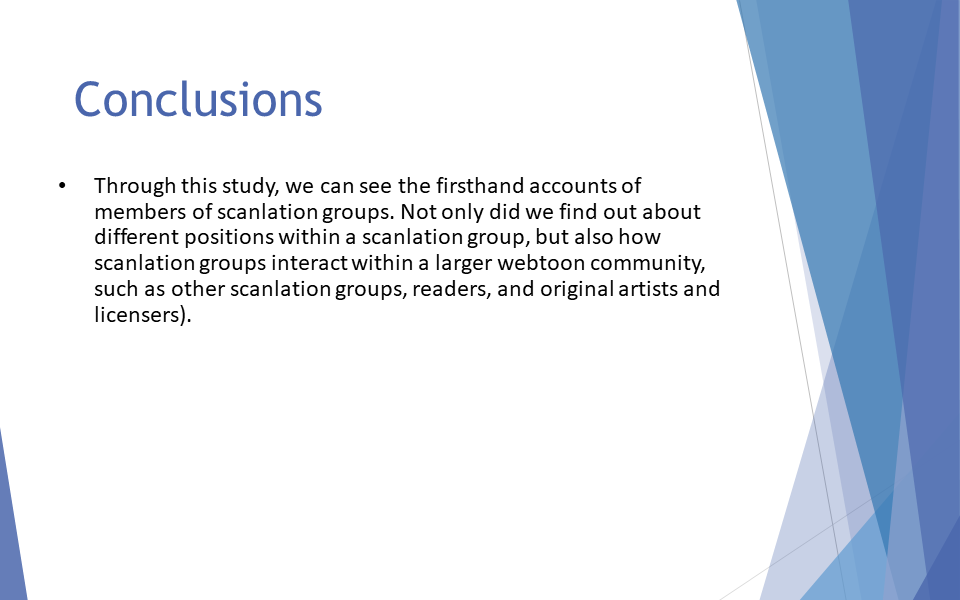 Webtoons, a portmanteau of web and cartoon, are a digital media form originating from South Korea that has recently garnered international attention and popularity. As a media form that is created, published, and consumed all digitally, webtoons have become a unique South Korean cultural product. This report aims to examine how South Korean webtoons became popular intentionally through an analysis of webtoon scanlation groups. Scanlation, a portmanteau of scan translation, is the process of fan-made scanning, translating, and editing a media form; webtoon scanlation groups are involved in this process of creation, but also in the distribution of webtoons. By examining scanlation groups via the lenses of platformization, participatory fandom, and gift economies, the growth of popularity and readership of South Korean webtoons can be explained.